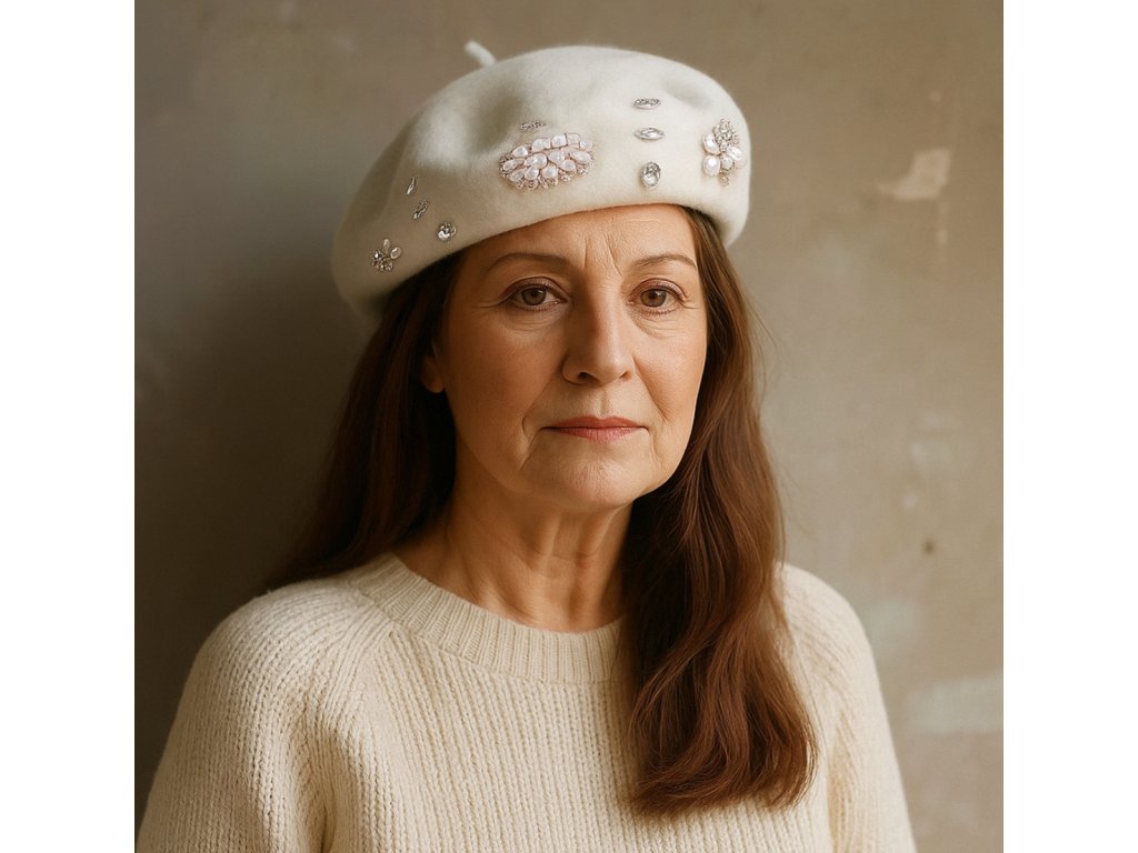 ŽENY ČEPICE Černý dámský baret s perlami a kameny