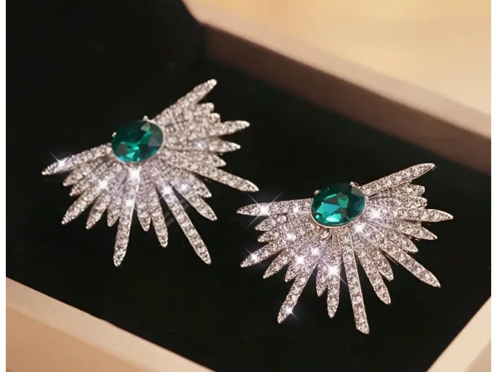 Luxusní štrasové náušnice se zeleným kamenem. Náušnice jsou ideální doplněk každé ženy, která chce zazářit.