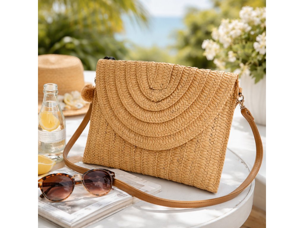 Letní kabelka proutěná s bambulkou