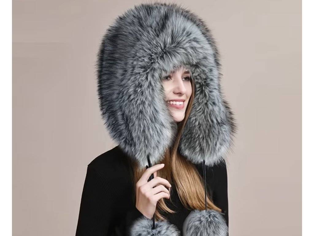 Luxusní kožešinová čepice ušanka stříbrná