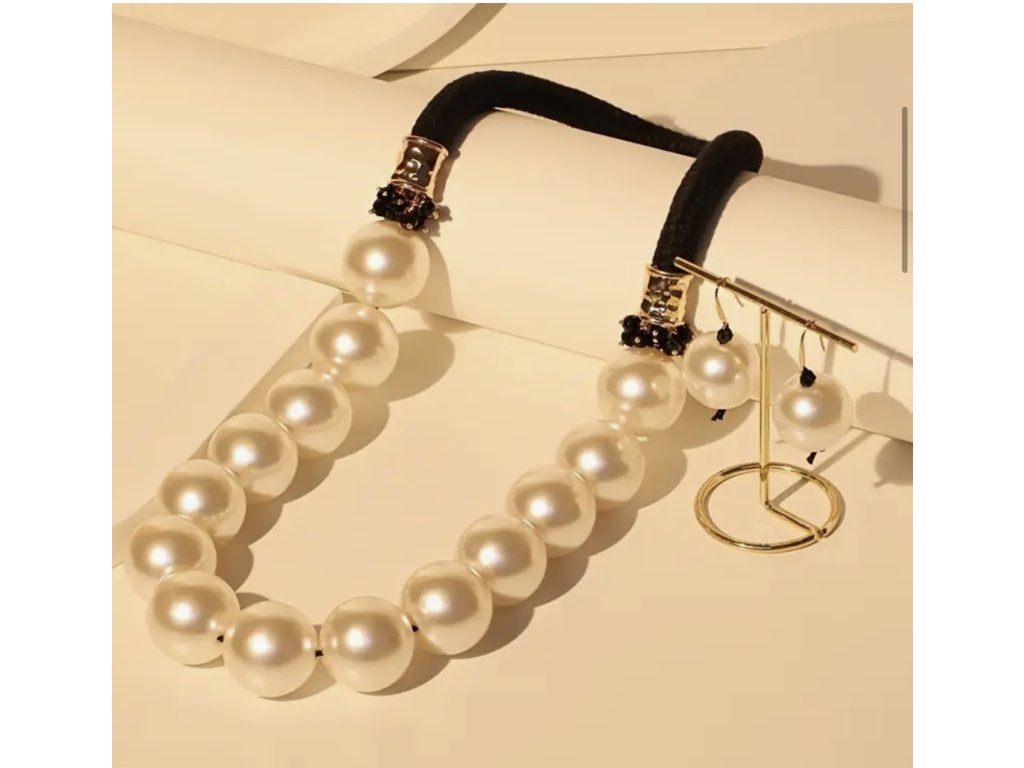 Černé lano s velkou perlou. Tento masivní náhrdelník zdobený velkou perlou je krásný doplněk pro výrazné ženy. Součásti jsou i náušnice.