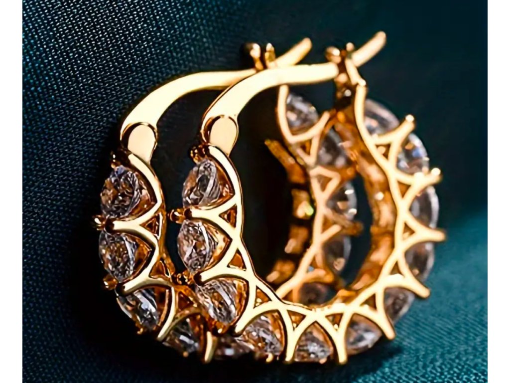 Kruhové náušnice střední velikosti osázené čirými kameny.