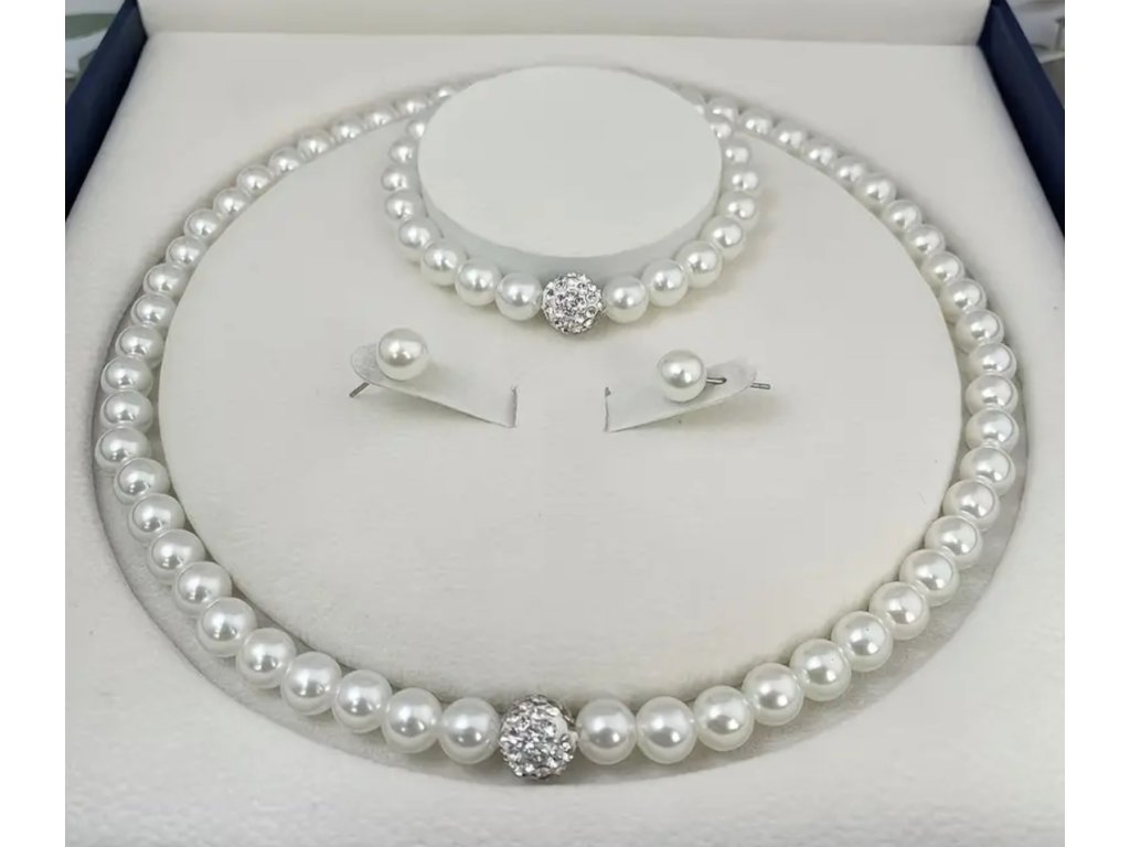 Sada perlových šperků. Krásná sada šperků z imitace perel s kamínky.