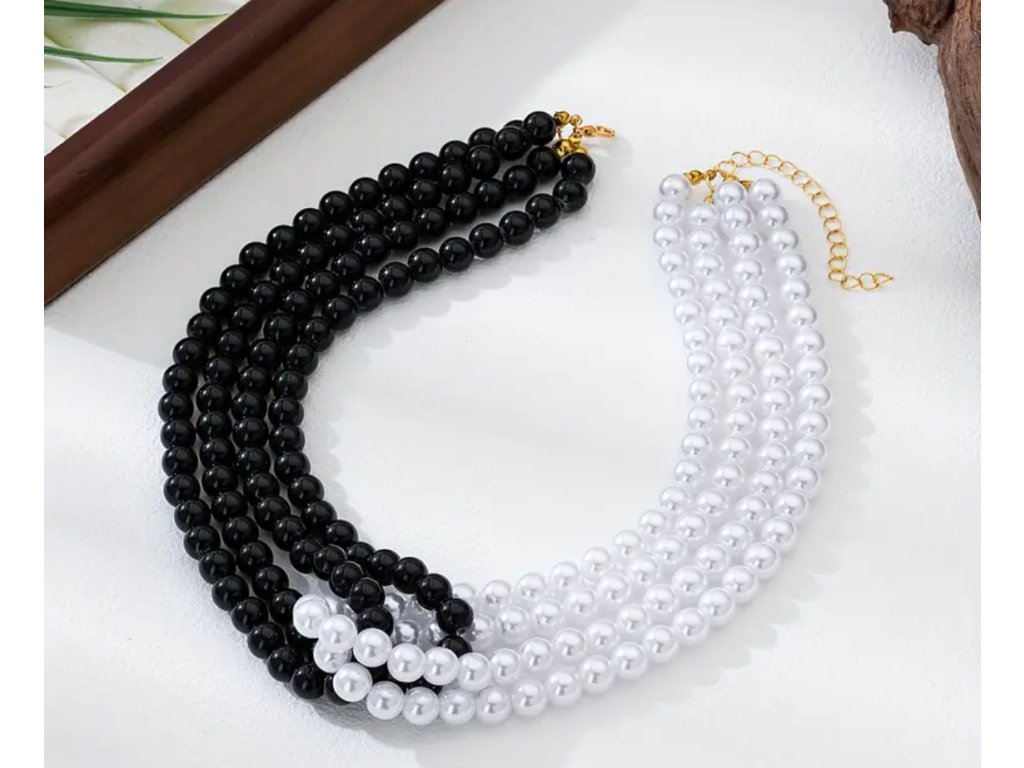Perličkový lehký náhrdelník motaného vzhledu. Toto provedení je v kombinaci s černou. Skladem i se zlatou.