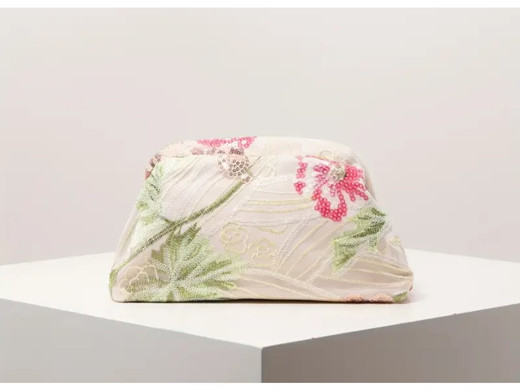 Krásná kabelka velikosti psaníčka. Kabelka má krásnou aplikaci světlých květin. Velikost ideální do ruky.